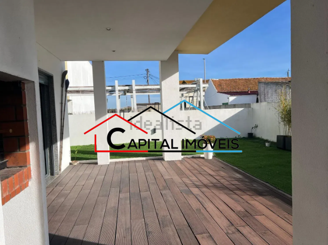 Moradia V4 c/quintal. (AP) Moradia V4 c/quintal. (AP) A moradia é composta por: Piso 0: Cozinha totalmente equipada; Sala espaçosa com lareira e com aproveitador de calor; Casa de Banho de serviços; Piso 1: Suíte com closet; dois quartos com roupeiro embutido. um quarto com roupeiro embutido e varanda; 1 casa de banho completa. Espaço exterior, equipado com churrasqueira e jardim; Janelas com vidro duplos; Porta de segurança; Porta blindada; Garagem box com portão automático;
